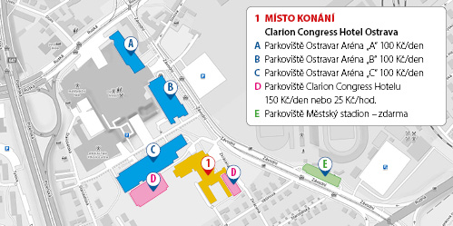 Doporučujeme využít placené parkovací plochy přímo v místě konání kongresu a nejbližším okolí (parkoviště Ostravar Arény).